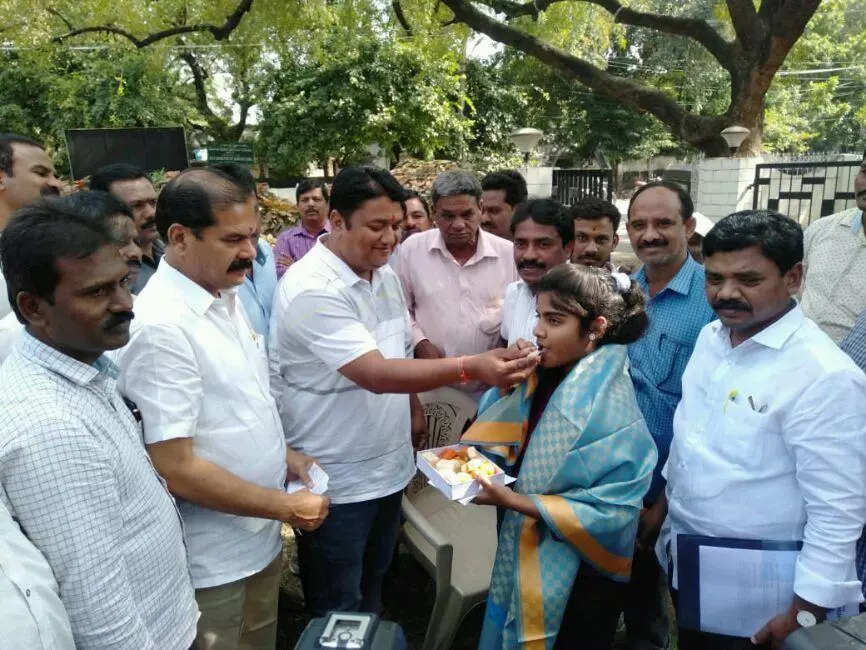 వరంగల్: వరంగల్ అర్బన్ జిల్లా హసన్ పర్తి మండల కేంద్రానికి చెందిన నిరుపేద ఆటో డ్రైవర్ మెకల రమేష్ రెండవ కూతురు అంజలి జేఈఈ లో అలిండియా ర్యాంక్ 2444 సాధించి మద్యప్రదేశ్ ఇండోర్ ఐఐటి లో బీటెక్ మొదటి సంవత్సరం సీటు సాధించింది. చదువుకునే ఆర్ధిక స్థోమత లేకపోవడం తో యూనియన్ నాయకత్వం మన తెలంగాణ ఆటో డ్రైవర్స్ యూనియన్ అధ్యక్షులు ప్రభుత్వ విప్ దాస్యం వినయ్ భాస్కర్ గారి ధృష్టికి తీసుకెళ్లడం వారు స్పంధించి ఆ అమ్మాయికి మొదటి సంవత్సరం ఫీజు మొత్తం 50వేల రూపాయలను వారి దయాహృదయం తో వ్యక్తి గతంగా నగదు అందజేశారు.