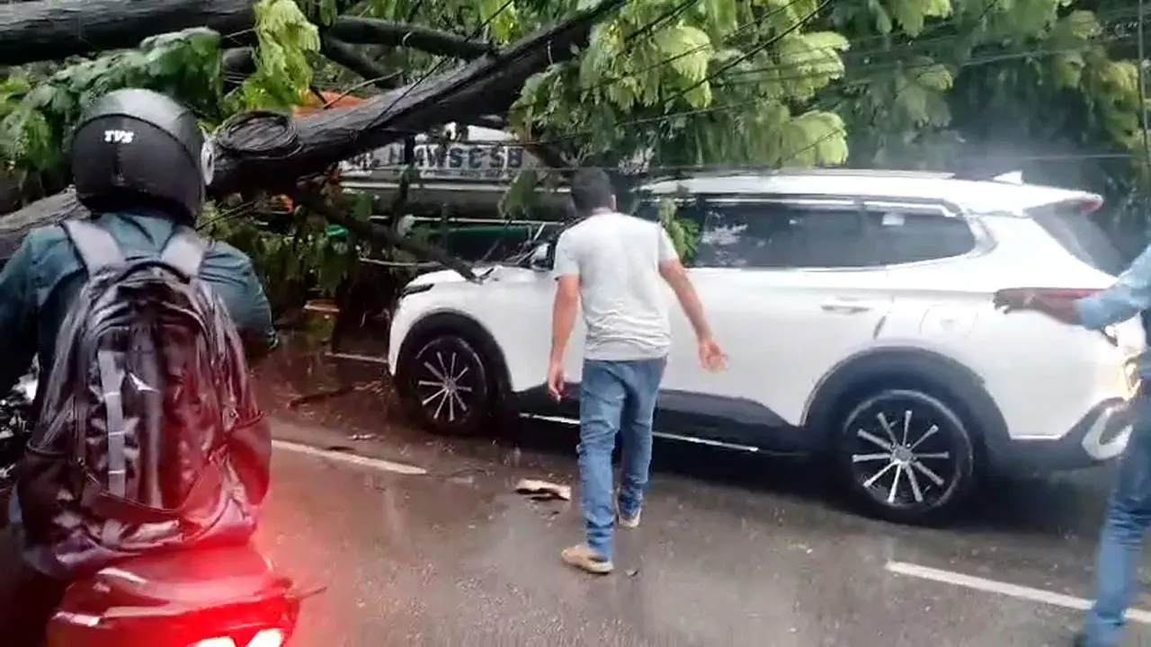 హైదరాబాద్లో కుండపోత వర్షం… వాహనాలపై పడిన భారీ చెట్టు
