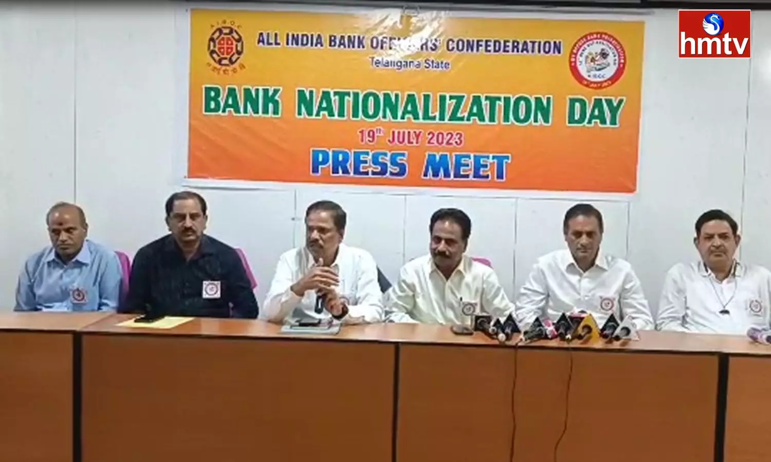 55th Bank Nationalization Day: 55వ బ్యాంక్ నేషనలైజేషన్ డే సందర్భంగా హైదరాబాద్ నారాయణగూడలో ఇండియా బ్యాంక్ ఆఫీసర్స్ కాన్ఫెడరేషన్ ఆధ్వర్యంలో సమావేశం నిర్వహించారు. బ్యాంక్ల జాతీయ దినోత్సవం సందర్భంగా అందరికి శుభాకాంక్షలు తెలిపారు అల్ ఇండియా బ్యాంక్ ఆఫీసర్స్ కాన్ఫెడరేషన్ తెలంగాణ అధ్యక్షులు ఎస్ అప్పస్వామి. ప్రజలకు సేవలు అందించడంలో బ్యాంకులు ఎంతో కృషి చేస్తున్నాయని తెలిపారు. బ్యాంక్ జాతీయకరణ తరువాతే దేశం అన్నిరంగలల్లో అభివృద్ధి చెందుతోందని...