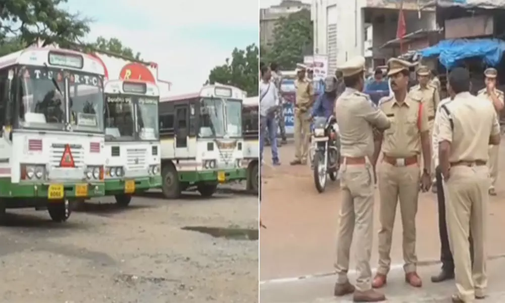 ఉమ్మడి వరంగల్లోని 9 డిపోల దగ్గర భారీ బందోబస్తు ఏర్పాటు చేశారు. పోలీసులతో కార్మికుల వాగ్వాదం చోటుచేసుకుంది.