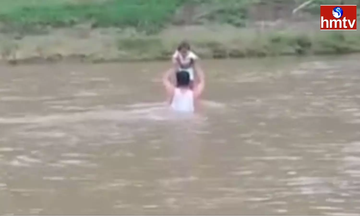 బాహుబలి సీన్ రిపీట్.. చిన్నారిని పైకెత్తి వాగు దాటిన వ్యక్తి