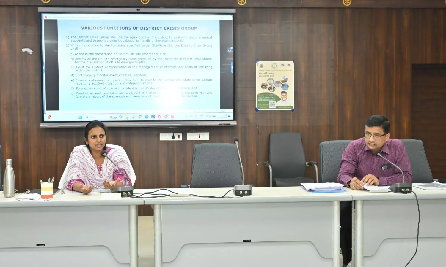 ఫ్యాక్టరీల విభాగం డిప్యూటీ చీఫ్ ఇన్ స్పెక్టర్ నారాయణ రెడ్డి జిల్లాలో ఉన్న కర్మాగారాల పరిస్థితి గురించి వివరించారు. టిజివి SRAAC లిమిటెడ్, భారత్ పెట్రోలియం కార్పొరేషన్ లిమిటెడ్, HPCL సంస్థల ప్రతినిధులు కర్మాగారాల్లో చేపట్టిన భద్రత చర్యల గురించి వివరించారు. సమావేశంలో అడిషనల్ మున్సిపల్ కమిషనర్ కృష్ణ, డీఎంహెచ్ వో కామేశ్వర ప్రసాద్, జిల్లా వ్యవసాయ శాఖ అధికారి వరలక్ష్మి, పొల్యూషన్ కంట్రోల్ బోర్డ్ ఎన్విరాన్మెంటల్ ఇంజినీర్ కిషోర్ రెడ్డి, ఇతర సభ్యులు, వివిధ పారిశ్రామిక సంస్థల యాజమాన్య ప్రతినిధులు పాల్గొన్నారు.
