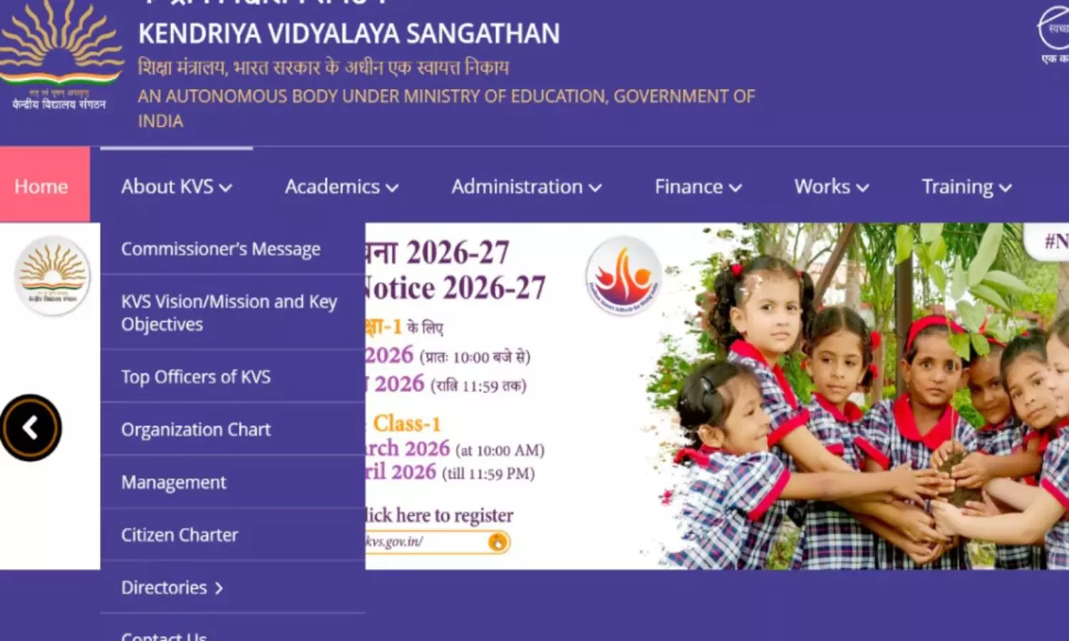 ముందుగా అధికారిక వెబ్సైట్ kvsangathan.nic.in లేదా admission.kvs.gov.in ను సందర్శించండి.