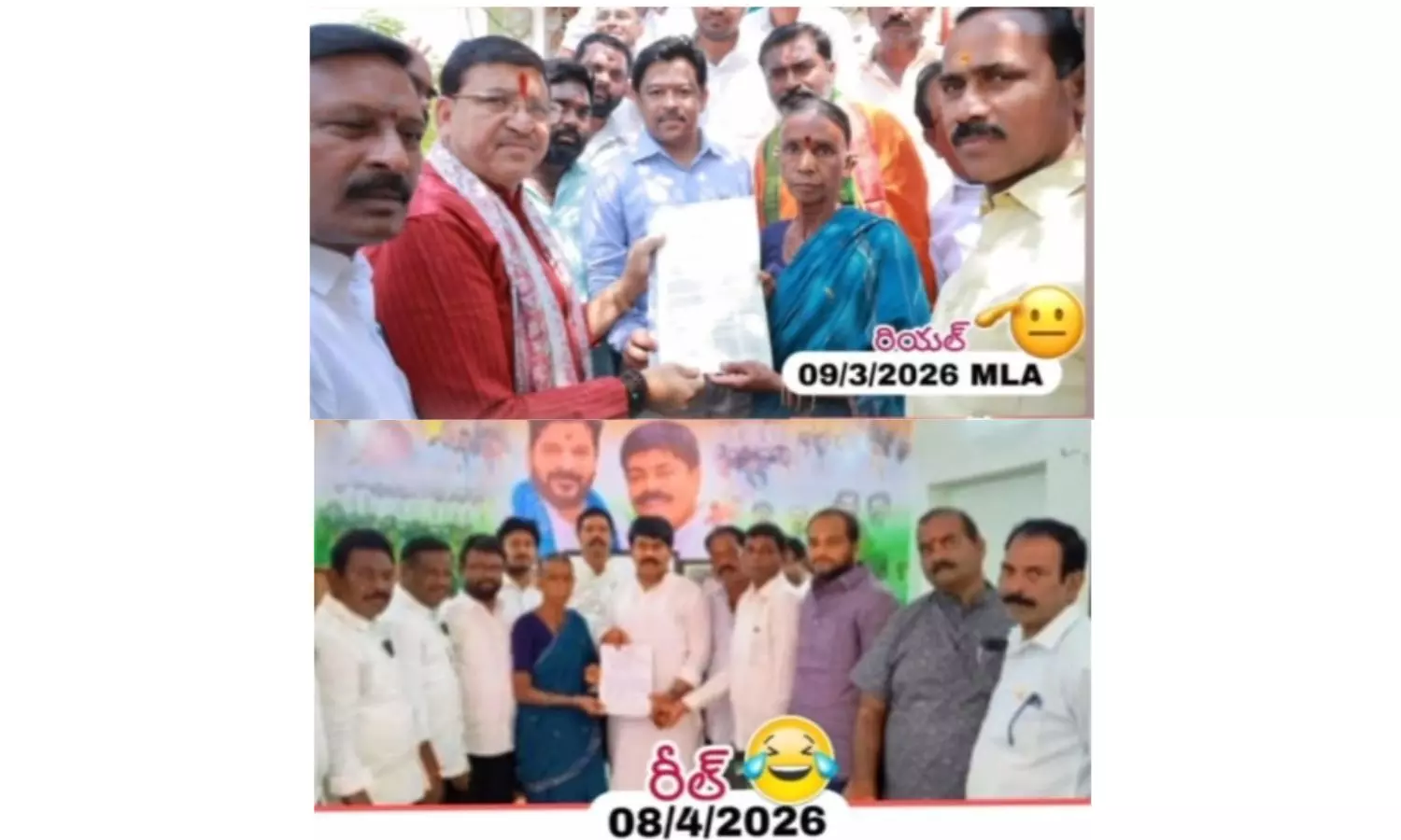 ఈ విషయాన్ని ఇరు పార్టీల కార్యకర్తలు ,నాయకులు, వాట్సాప్ స్టేటస్ లో ఫోటోలు పెట్టుకోవడంతో , ఒకేసారిగా అది చూసి నియోజకవర్గ ప్రజలు అవాకయ్యారు, ఒక నెల కిందనే ఎమ్మెల్యే చేతుల అందజేశారు, మళ్లీ కొత్తగా కాంగ్రెస్ పార్టీ నియోజవర్గ ఇన్చార్జ్ అందచేతుల మీదుగా ఆంజనేయం విశేషం అన్నారు. మొత్తానికైతే నియోజవర్గంలో ప్రజలకు శంకర్ దాదా ఎంబిబిఎస్ రియల్ అండ్ రీల్ గా మారింది, ఈ యొక్క వీర జవాన్ తల్లికి అందజేసిన 300 గజాల స్థలం.... ఒకరు ఇచ్చిన తర్వాత ఇంకొకరికి తీయడం ఏంటి అని ప్రజలకు చర్చ నీ అంశంగా మారింది.