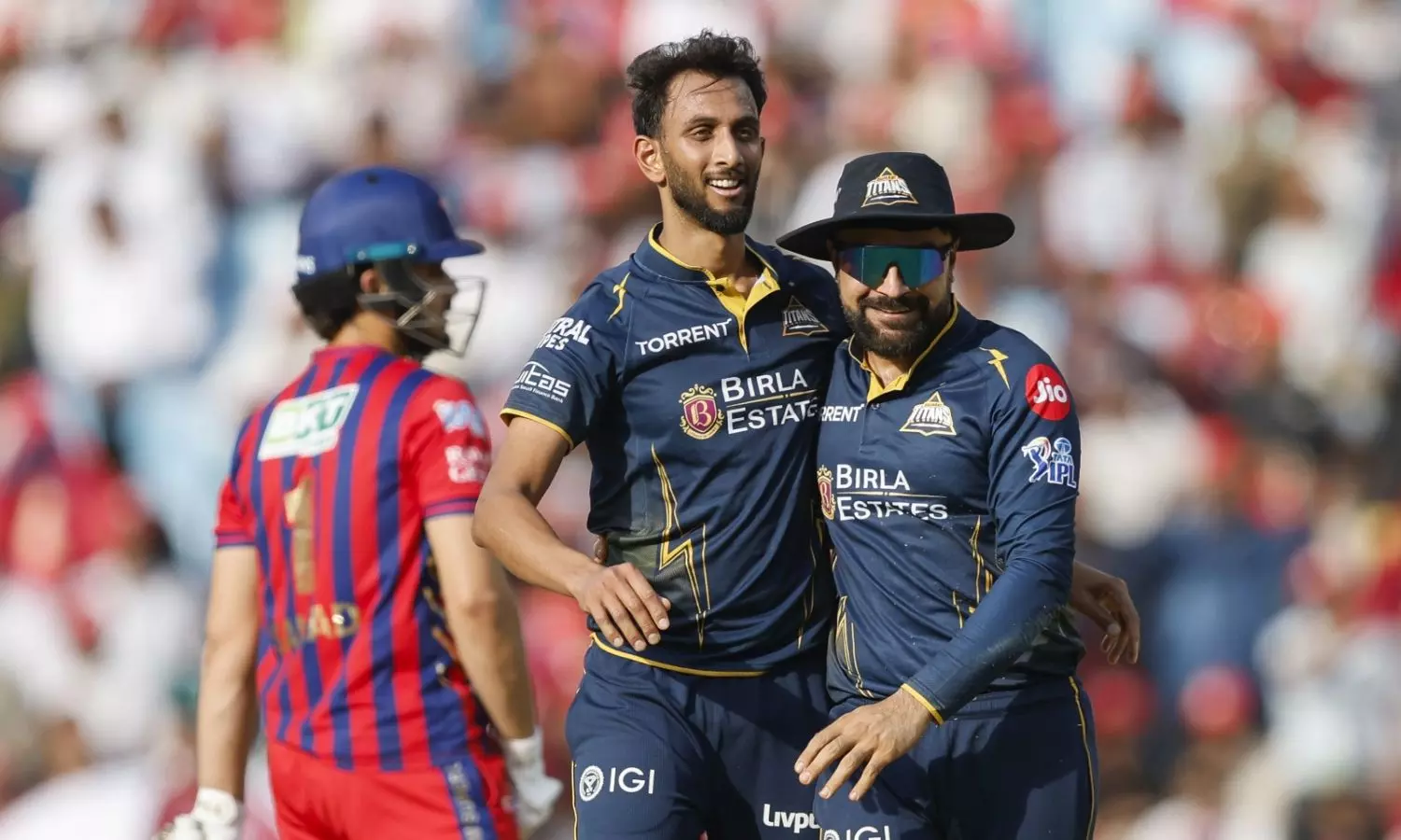 గుజరాత్ టైటాన్స్ బౌలర్లలో ప్రసిద్ధ్ కృష్ణ అద్భుత ప్రదర్శన కనబరిచాడు. అతను 4 ఓవర్లలో 28 పరుగులు ఇచ్చి 4 వికెట్లు పడగొట్టి ఎల్ఎస్జీని కట్టడి చేశాడు. సిరాజ్ 1 వికెట్ తీసినా.. కట్టుదిట్టంగా బౌలింగ్ చేశాడు. రబాడ (54) భారీగా రన్స్ ఇచ్చాడు. అశోక్ శర్మ 2 వికెట్లు పడగొట్టాడు. రషీద్ ఖాన్ వికెట్ తీయకపోయినా బాగా బౌలింగ్ చేశాడు. 165 పరుగుల లక్ష్యంతో గుజరాత్ బ్యాటింగ్కు దిగనుంది.