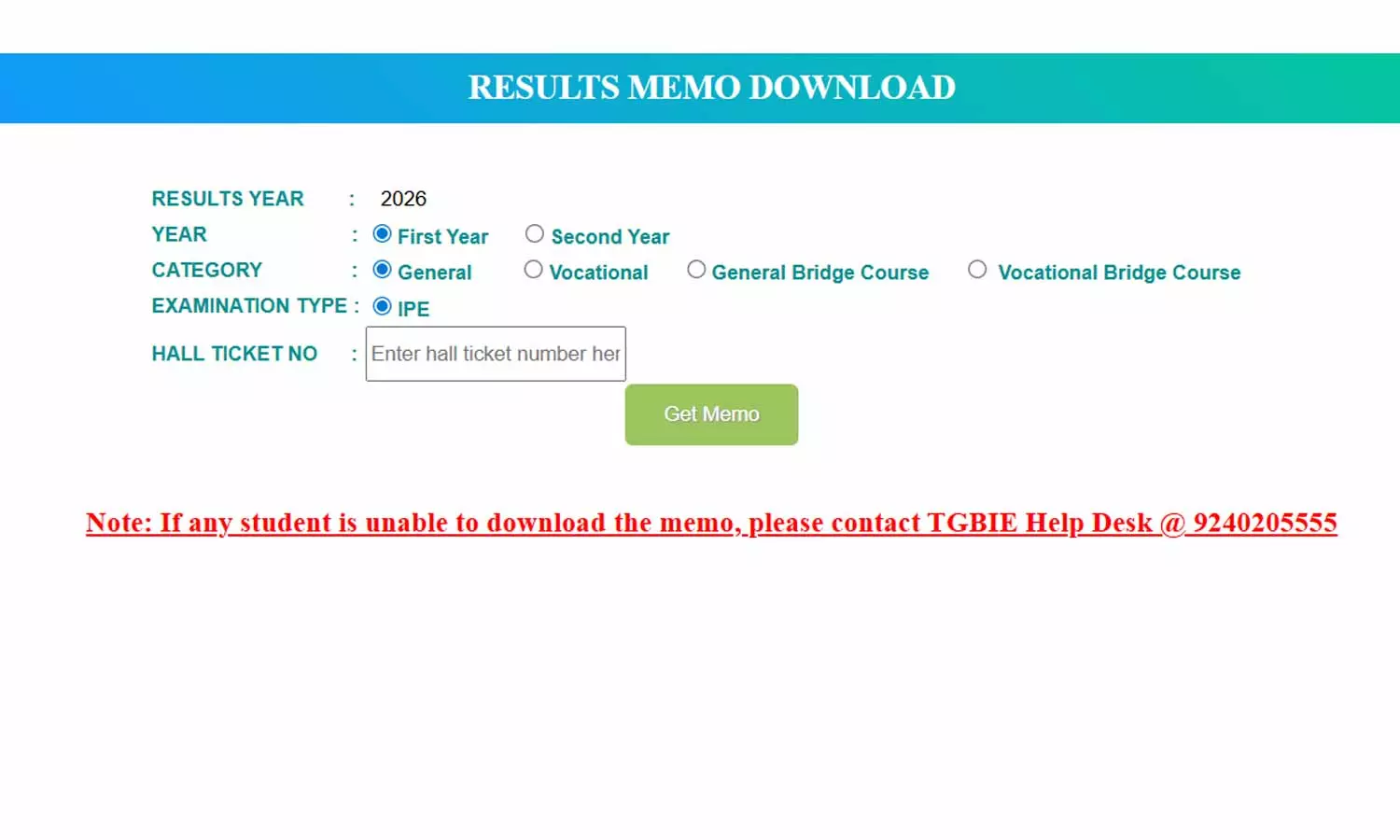 ♦ హోమ్ పేజీలో 'Inter 1st Year Results' లేదా 'Inter 2nd Year Results' లింక్పై క్లిక్ చేయండి.