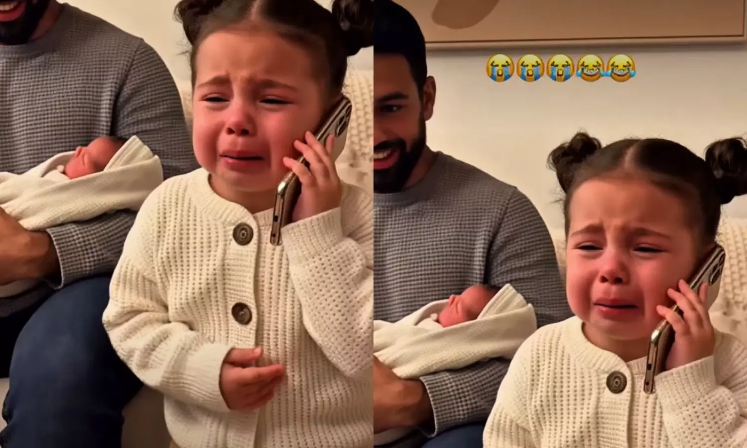 ఈ వీడియోలో ఒక చిన్నారి పోలీసులకు.. హలొ పోలీస్.. మా డాడీని అరెస్ట్ చేయండి. అతను నన్ను ఇగ్నోర్ చేస్తున్నాడు.. నా ప్లేస్ ను ఇంకో బేబీ ఆక్యుపై చేసింది అని ఏడుస్తూ చెప్పడం కనిపిస్తుంది. ముద్దులు మూటగట్టేలా క్యూట్ గా ఉన్న ఆ చిన్నారి.. ముద్దు ముద్దుగా ఏడుస్తూ అలా చెబుతుంటే.. వెనుక పక్క ఆమె తండ్రి ఒడిలో ఒక చంటి బిడ్డను ఎత్తుకుని నవ్వుకుంటూ ఉండడం కనిపిస్తుంది.